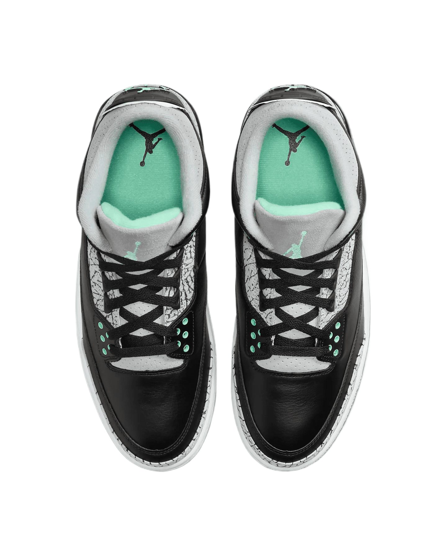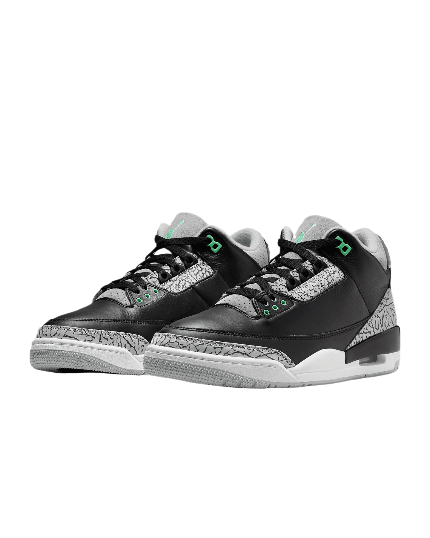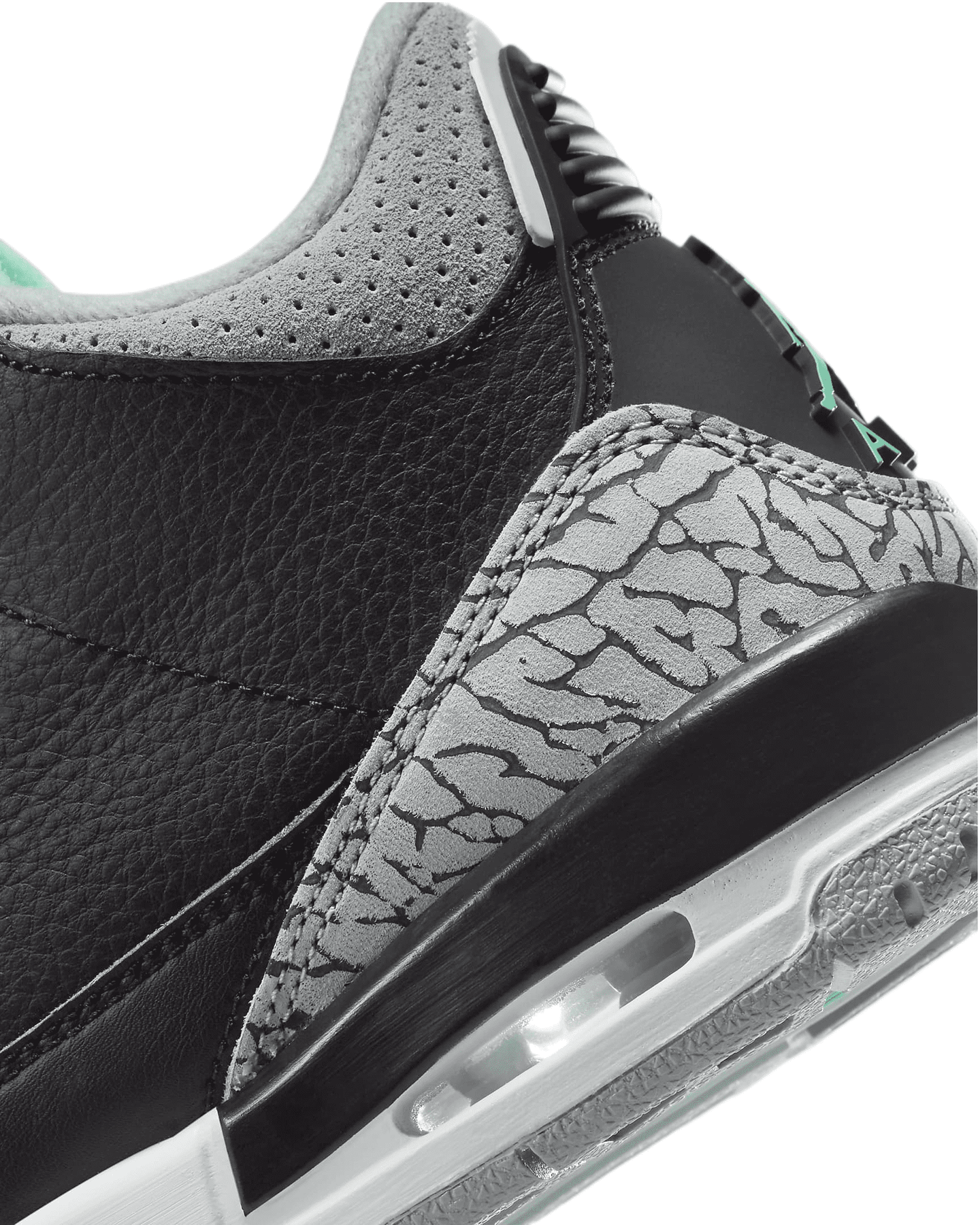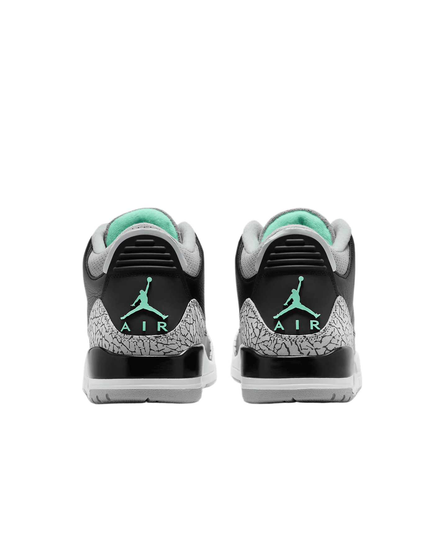 Heritage and Streetwear Fusion: With its rich heritage and contemporary color palette, the Air Jordan 3 Retro Black/Green Glow-Wolf Grey seamlessly blends classic basketball aesthetics with modern streetwear style, making it a standout addition to your sneaker rotation.